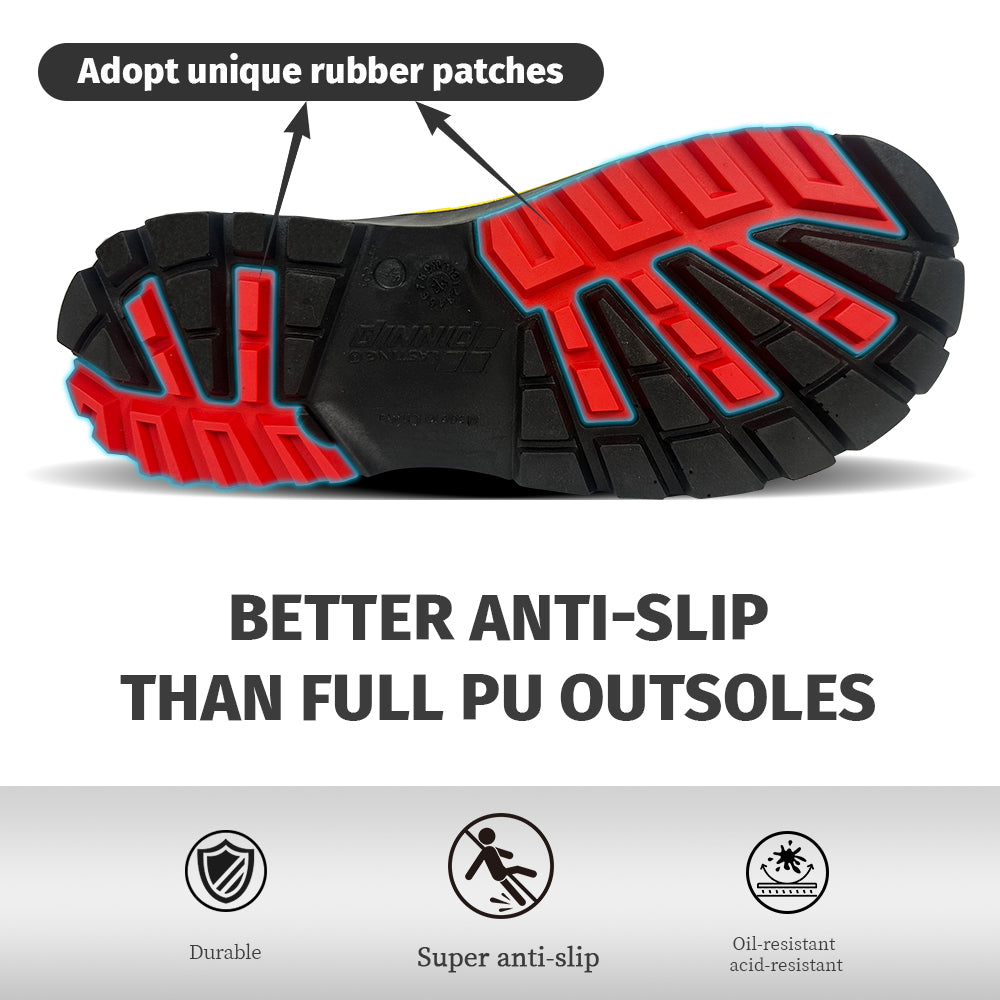 It has better anti-slip performance, walk easily on ice and anti-puncture, anti-oil, acid-resistant, anti-smashing, anti-electric shock in any extreme environment.
