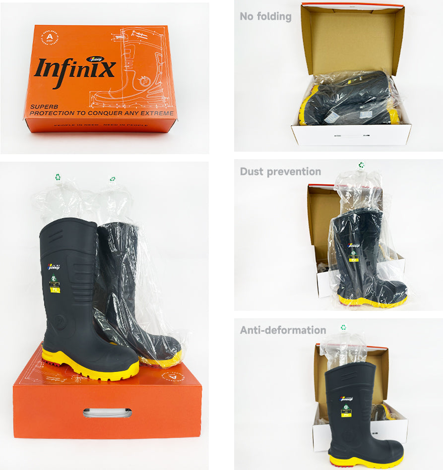 PINNIP boots adopt an integral injection molding process. In addition to the most basic PU material, the boots also have anti-puncture cloth/anti-puncture steel plate, steel toe, and special anti-slip texture.